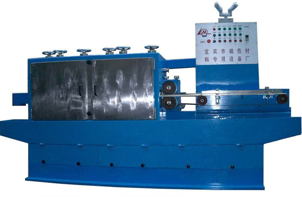 GYSM1型四工位瓦形磁体通过式(内外弧复合)磨床主要用于磨削干压瓦形磁体内弧、外弧及拱高,采用通过式磨削方式,特别适合大批量磁瓦磨削干压瓦形磁体内、外弧和弦宽。本机采用复合工位,第一个工位粗磨磁瓦的外弧,为内弧加工出基准,第二个工位精磨磁瓦的内弧和拱高,第三工位精磨磁瓦的外弧,第四工位精磨磁瓦的弦宽。